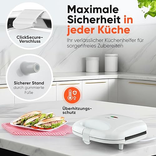 Clatronic, Appareil à Sandwich ST3813 Blanc - Plaques Triangulaires Antiadhésives, Poignée Calorifugée, Régulateur de Température Automatique, Système de Verrouillage Variable, 680-820W, 220-240V
