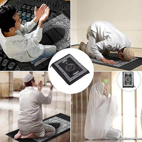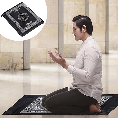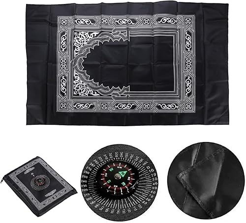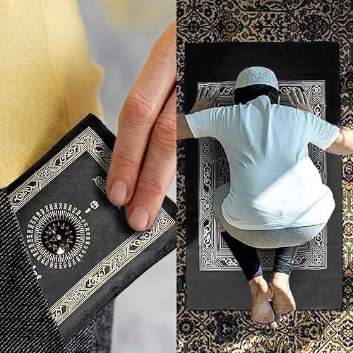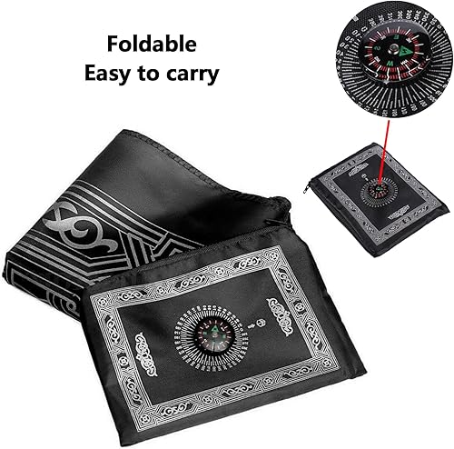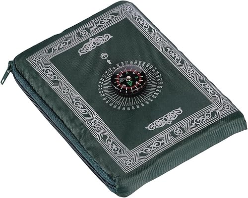 NIYATA Tapis de Priere de Poche Musulman, Tapis Priere Musulman Voyage,100x60CM,Vert Foncé,avec Boussole et Sac,Tapis de Prière Islamique,Tapis Prière Vert de Poche