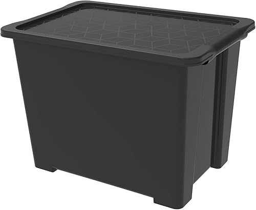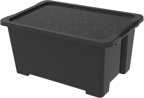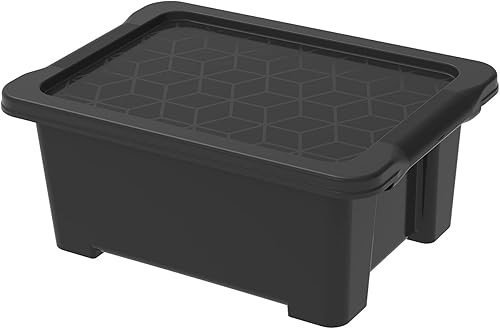 Rotho Evo Easy Boîte de rangement 15l avec couvercle, Plastique (PP recyclé), noir, 15l (39.0 x 28.0 x 23.0 cm)