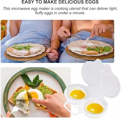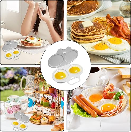 Pocheuse à œufs pochés réutilisable pour micro-ondes - 2 cavités - Antiadhésive - Avec couvercle - Pour ustensiles de cuisine - Blanc