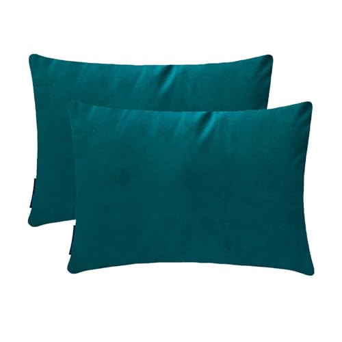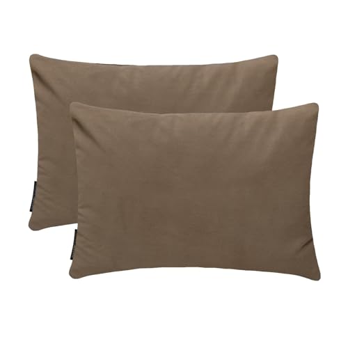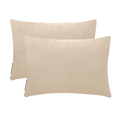 Crème Écru Luxe Housse de coussin oblongue 30 x 50 cm | Paquet de 2 Moderne Velours Housse de coussin Solide | Plaine Taies d'oreiller pour canapé, sofa et lit - Ecru Cream Velvet Dream