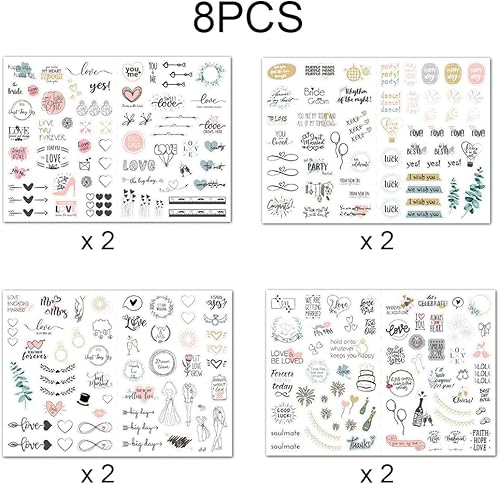 Gotetiso 8 Feuilles Stickers Mariage Autocollants Livre d'or Mariage Jolis Vintage Autocollants Album Photos Mariage Scrapbooking Mariage Stickers Bricolage Cartes Décoration de Mariage 230 Schémas