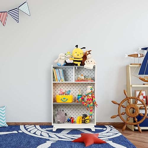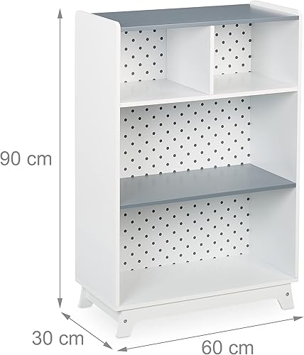 Relaxdays Étagère pour Enfants pour Jouets et Livres, 90x60x30 cm, 4 espaces, Bout de Chou, Rangement, Blanc/Gris