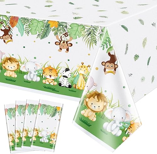 Lot De 4 Nappes en Plastique À Imprimé Animal, Décorations De Fête d'anniversaire pour Garçons Et Enfants, 130 X 270 Cm