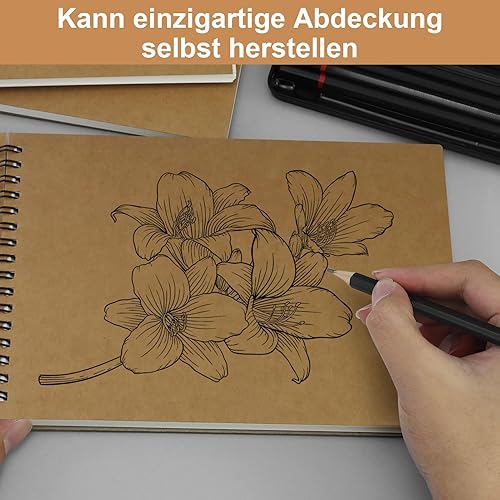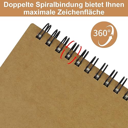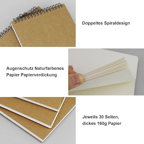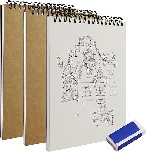Lot de 3 blocs à dessin A5 - Carnet de croquis à spirale - 60 pages de papier croquis - Panneau rigide sans acide - Pour dessin, croquis, peinture - Avec 1 petite gomme blanche