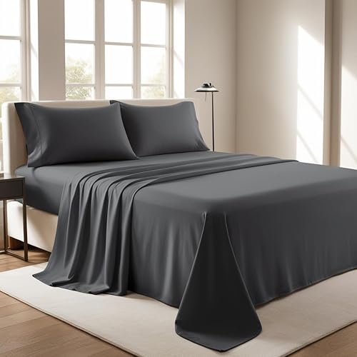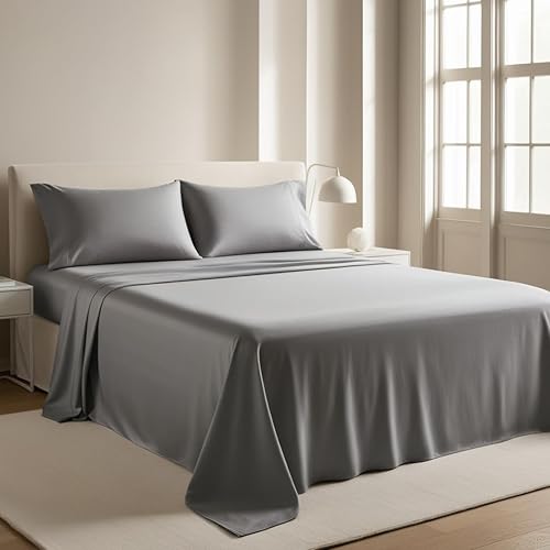 Drap plat 100 % coton uni ultra doux, de qualité hôtelière de qualité hôtelière, infroissable, facile d'entretien, résistant aux plis, aux taches et à la décoloration (argenté, super king size)