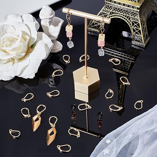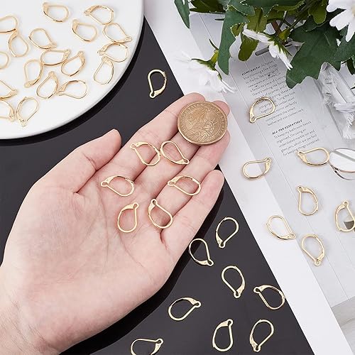 Beebeecraft 1 boîte 50 pièces Boucles d'oreilles à Levier Fermoir Plaqué Or 24K Crochets de Fermoirs à Levier en Argent 16X10mm oucles Oreilles à Levier pour la Fabrication de Bijoux