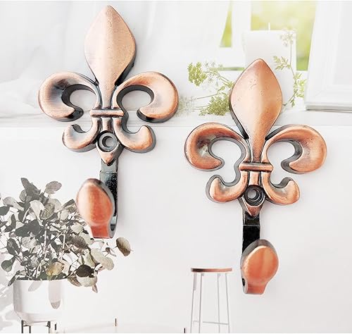 2 Lot Crochets Muraux, Crochets Décoratifs, Crochets Muraux Rideaux, Crochets Muraux en Alliage Vintage, Crochets pour Rideaux en Métal, pour Salon, Salle de Bain, Placard, Manteau (Rouge Antique)