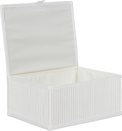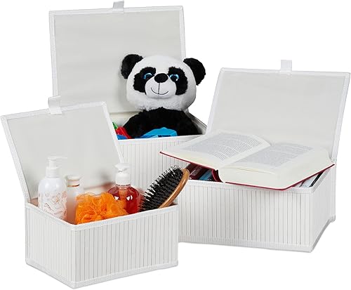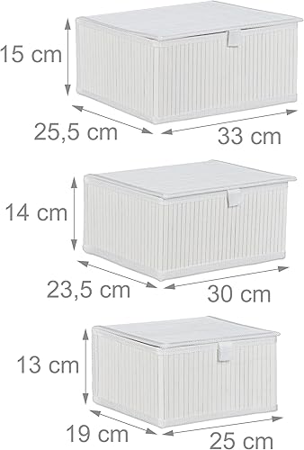 Relaxdays 10024308_49 Corbeille de rangement couvercle, Set de 3 panier en, étagère Organiseur, décoration, blanc, 15 x 33 x 25,5 cm