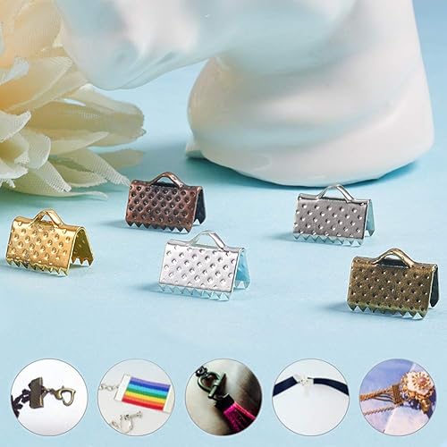 PH PandaHall - 400 Pcs 5 Couleurs Embout de Ruban Extrémités de Ruban en Fer pour la Fabrication de Bijoux, 10x7x5mm