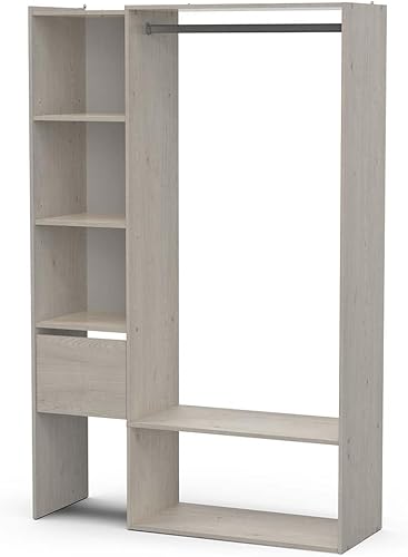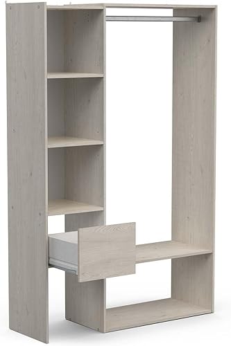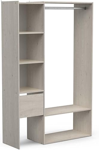 Demeyere Kit Dressing Ouvert Extensible avec Penderie 4 Niches & 1 Tiroir en Bois – Coloris Chêne Topanga-120 x 183 x 40 cm