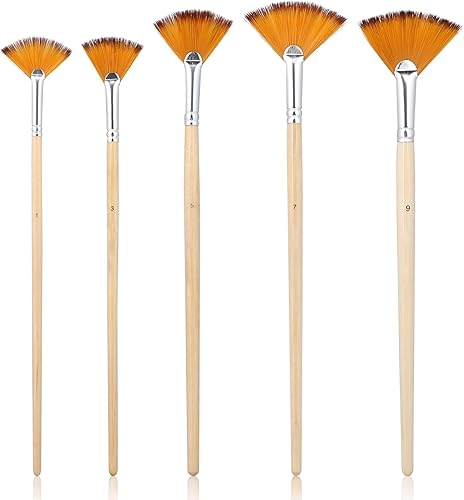 Lot de 5 pinceaux éventails pour Peinture Acrylique à l'huile et Acrylique, pinceaux éventails pour Peinture Acrylique, pinceaux éventail pour Peinture Acrylique, pinceaux éventail pour Peinture à