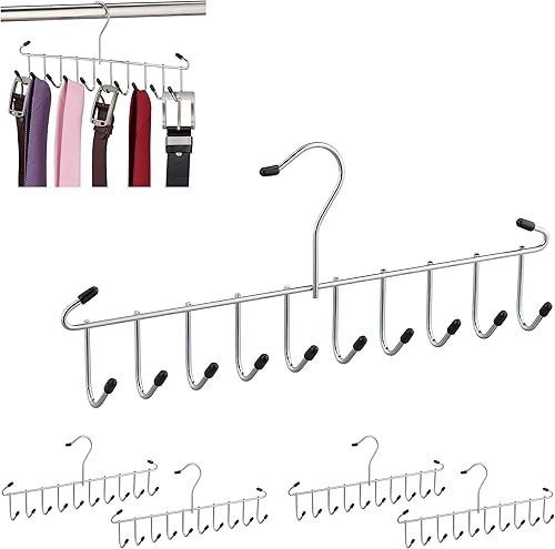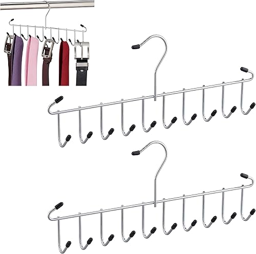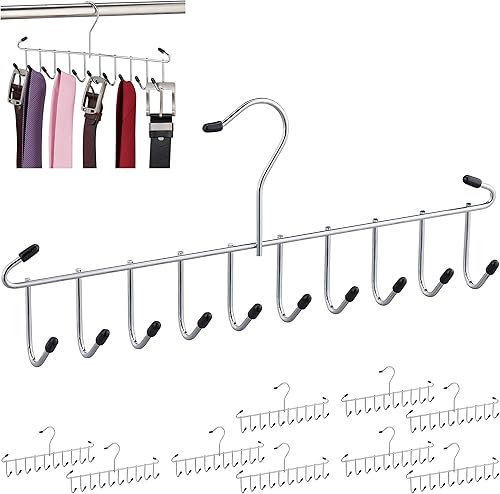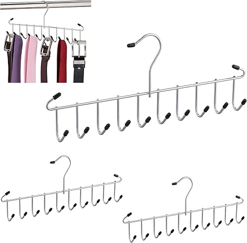 Relaxdays Porte-Ceintures Lot de 3 Cintre Cravates,Ceintures, Foulard, métal, Peu encombrant, pour Armoire,12 Crochets, argenté