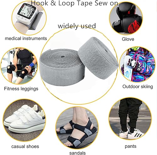 ApuaVireo&Co Ruban Auto-agrippant à Coudre Bandes de Nylon Grises de 30 mm, Face arrière Non autocollante, Ruban de Fixation for Tissu à emboîter(30MM x 10 Yards)