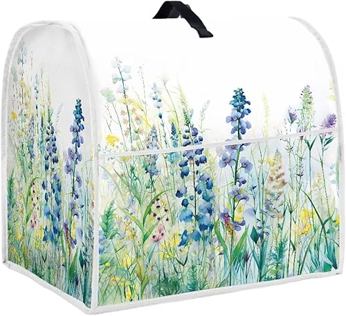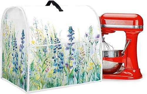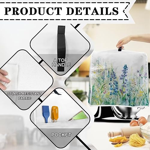 HUISEFOR Housse de protection anti-poussière pour robot culinaire de 4,5 à 5 litres - Motif floral bleu - Avec poches pour ustensiles de cuisine et recettes