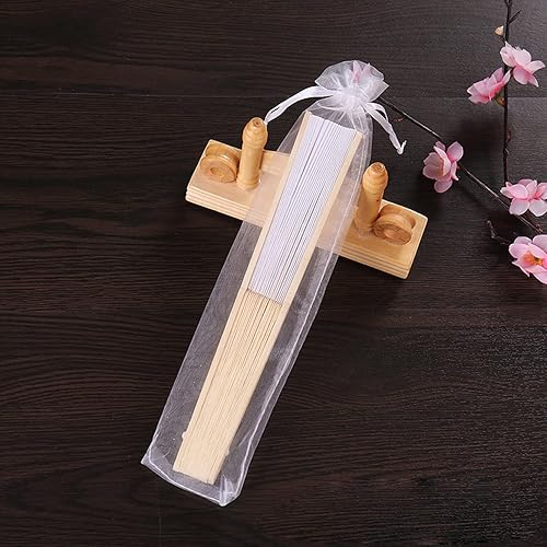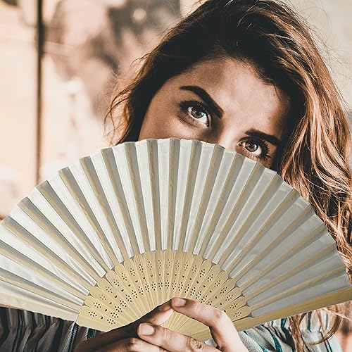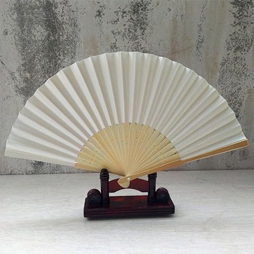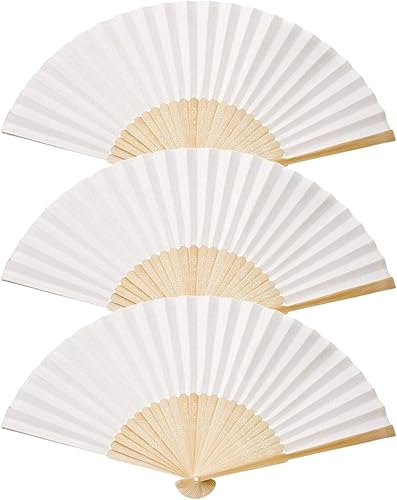 GOIEHIR Éventail Pliant, 3 Pièces Eventail Mariage, Éventail Soie pour la Danse, La Fête, Le Mariage et Le Bricolage, Blanc