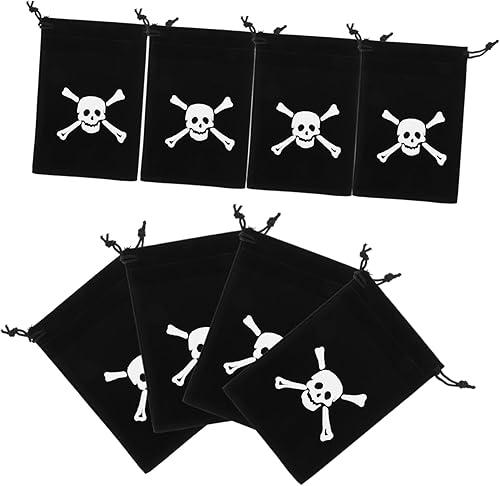 PRETYZOOM Lot De 8 Petits En Toile De Jute Avec Cordon De Serrage Motif Tête De Mort Pour Décorations De Fête Pirate