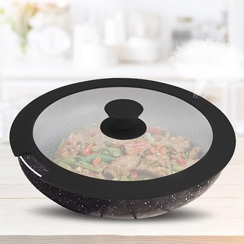 Couvercle en silicone résistant à la chaleur avec couvercle en verre trempé facile à nettoyer pour la cuisine (26 cm, blanc)