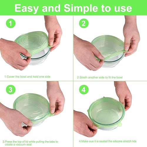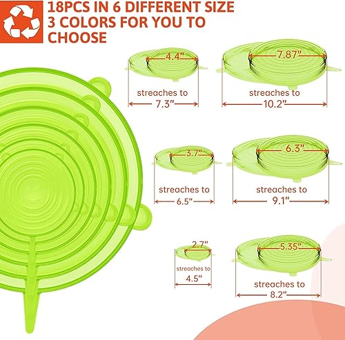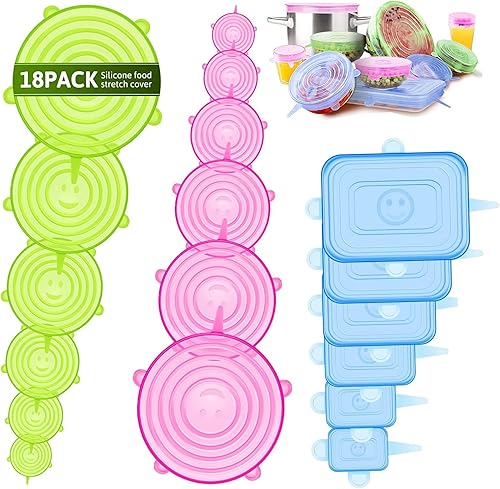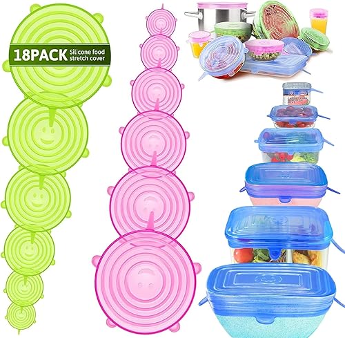 Couvercle Silicone Alimentaire,[18 pcs]Rond rectangulaire eco Couvercle Silicone Extensible,Film etirable reutilisable,Universel pour Micro Ondes Four,Rangement frigo,bols,tasses,fruits