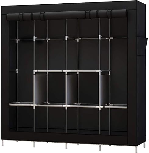 UDEAR Armoire de Rangement Garde-Robe Pliable en Tissu intissé Garde-Robe Penderies pour Chambre d'adulte (Noir)