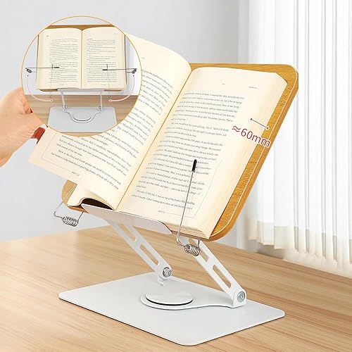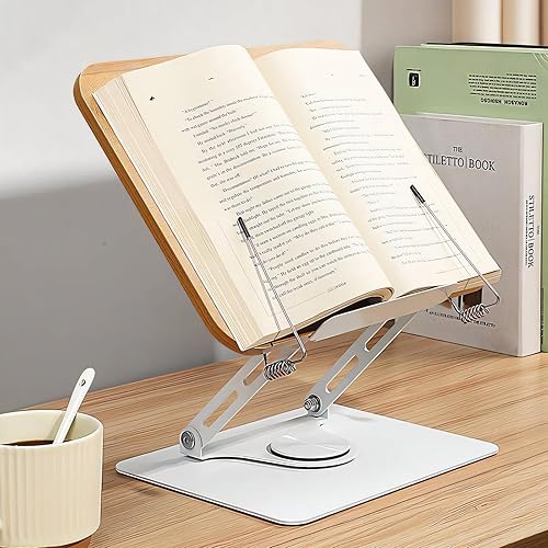 Litinliv Support de Livre sur Pied pour la Lecture, Support de Livre Réglable avec Base Pivotante à 360°, Support Livre, Porte Livre, Supports pour Livre de Recettes, Support Tablette Bois pour Livre