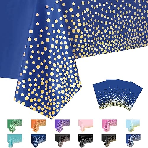 MORAINJAY 4 Pièces Nappe à Pois Jetables,137x274cm Nappe de Table Rectangulaire,Points Dorés Bleu Nappes Imperméables pour Anniversaire,Picnic,Exterieur,Jardin,Mariage, Noël