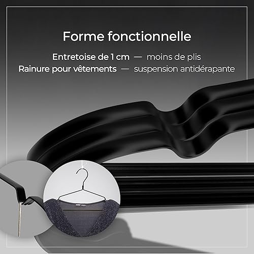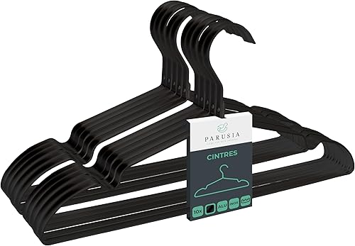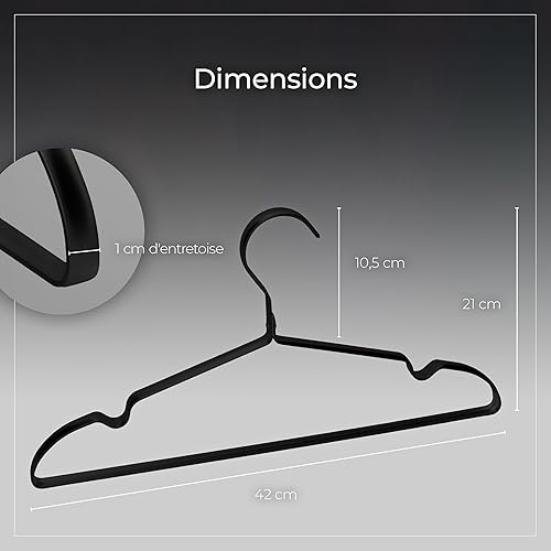 Parusia cintres en métal Noir, 42 cm de Large, 1 cm d'épaisseur, inoxydables, indéformables, pour Le Rangement et l'organisation Peu encombrants de penderie, de portemanteaux, de vêtements (20)