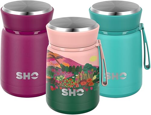 SHO Bouteille alimentaire isotherme à double paroi en acier inoxydable - 10 heures de chaleur et 20 heures de froid - 530 ml, 800 ml, sans BPA (Rainbow Mountain, 530 ml)