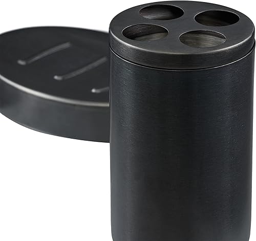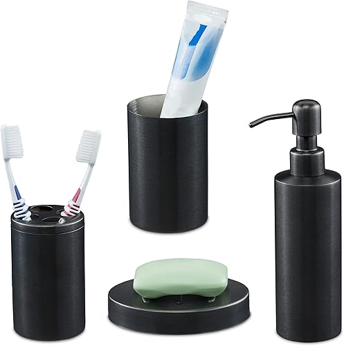 Relaxdays Accessoires de Salle de Bain, 4 pièces, en INOX brossé et Plastique, Design Moderne et harmonieux, Anthracite