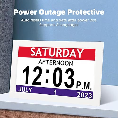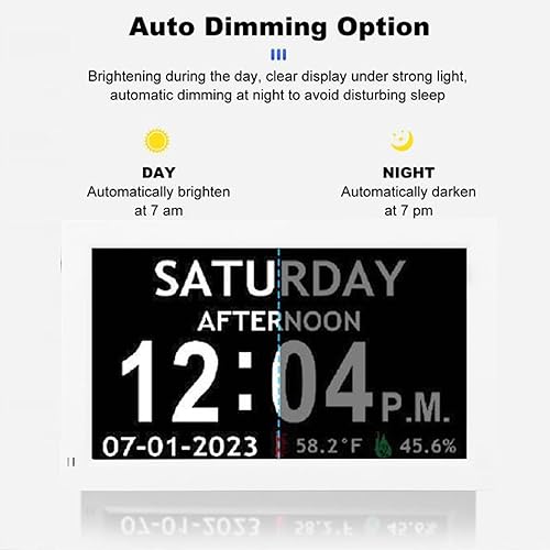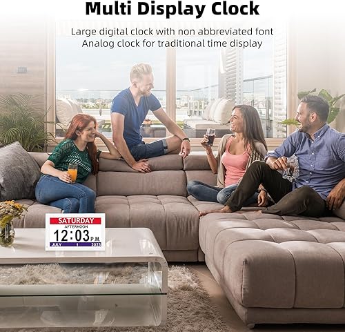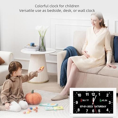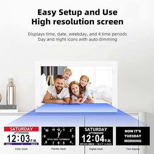 Horloge Numérique de 7 Pouces avec 12 Alarmes, Horloge de Calendrier de Date et de Jour Non abrégé pour Les Seniors et Tout Le Monde, Gradation Automatique, Grand Réveil