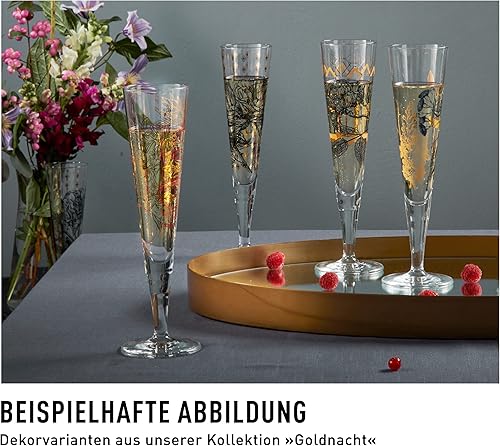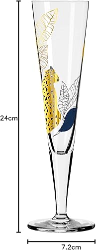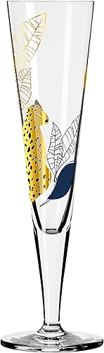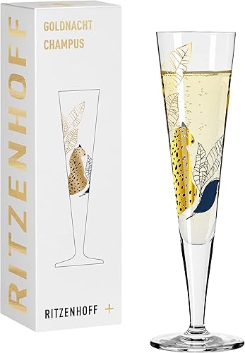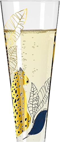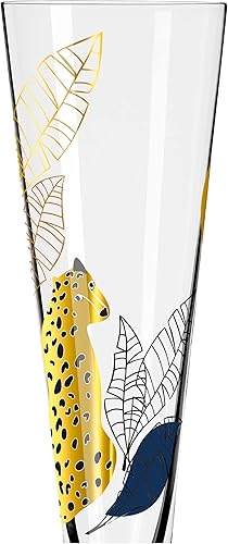 Ritzenhoff 1071033 Verre à champagne 200 ml Série Goldnacht n° 33 Motif guépard avec or véritable Fabriqué en Allemagne, Bleu/Doré