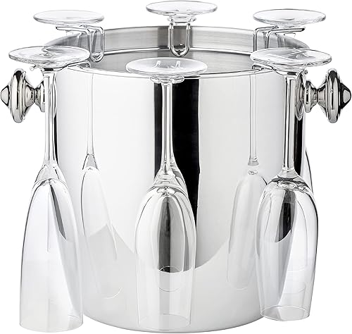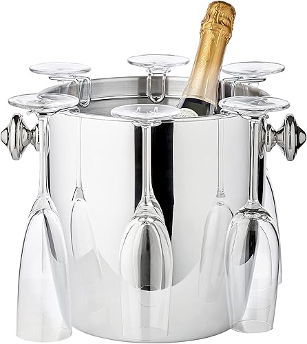 EDZARD Seau à champagne au pied de Genève, hauteur 85 cm, seau inclus. Support à pied et verre, en acier inoxydable