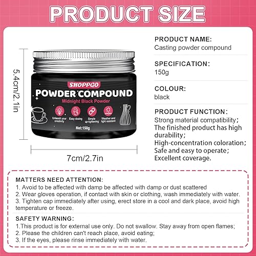 SHOPPGO Colorant Beton, Poudre de Coulée, Utilisé pour Composé de Moulage en Relief, Plâtre, Béton, Très Opaque, Résistant À la Lumière, Pigment D'oxyde de Couleur Noir, 150g