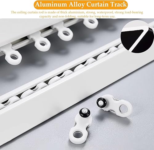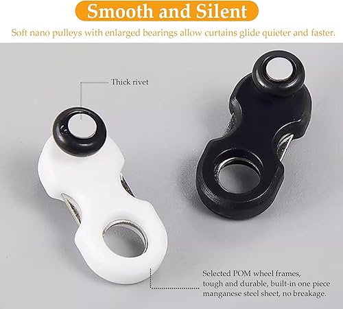 Rail Rideaux 20/30/50 crochets pour rails de rideaux, poulies nano souples, roulettes silencieuses pour rideaux, glissières à crochets, patins de plafond, tringles de fenêtre, doubles roulettes(White,