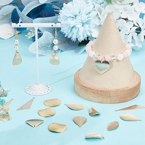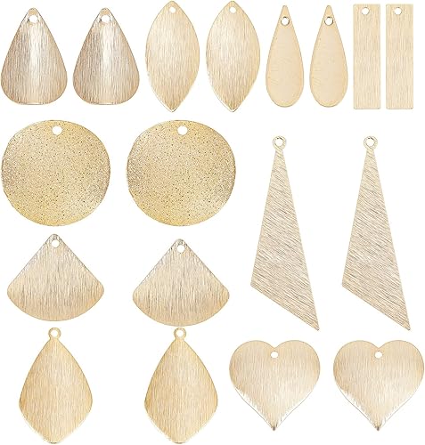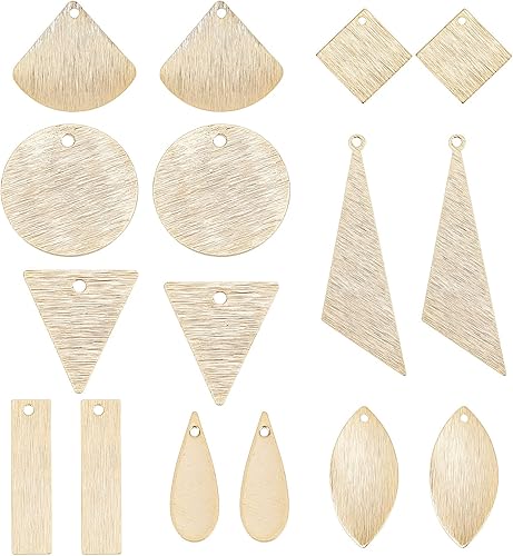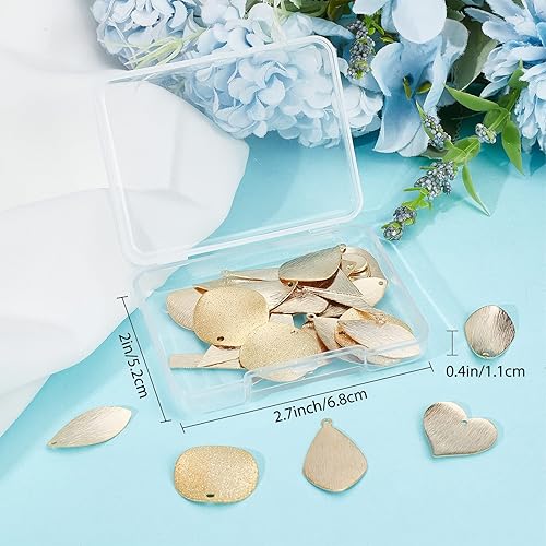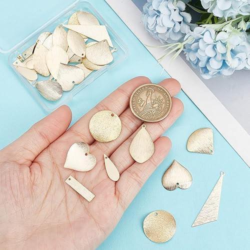 SUNNYCLUE 1boîte 32pièces Véritables Breloques en Laiton Plaqué Or 24K Plat Rond Breloques en Métal Texturé Larme Triangle Breloque Rectangle Estampage Étiquette Vierges Breloques pour la Fabrication
