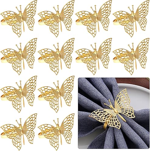 Lvjkes 12 Pièces Rond de Serviette de Table, Rond de Serviette de Table personnalisé, Rond de Serviette Creux élégant, pour Mariage Banquet Anniversaire Fête Anniversaire Décoration De Table (Or)