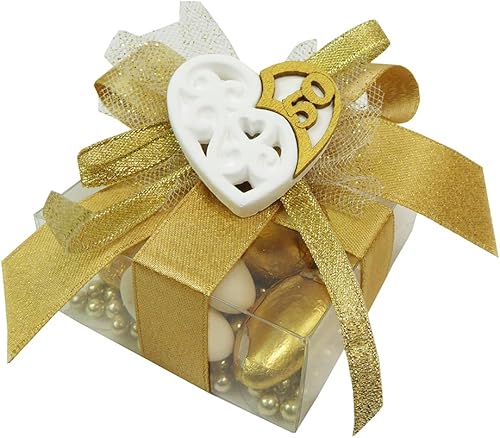 Zelda Bomboniere Bonbonnière pour mariage en or 50 ans, boîte en forme de chiffre 50 craies