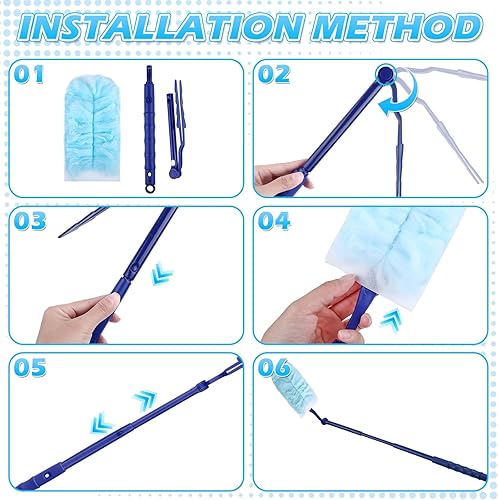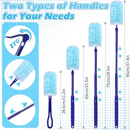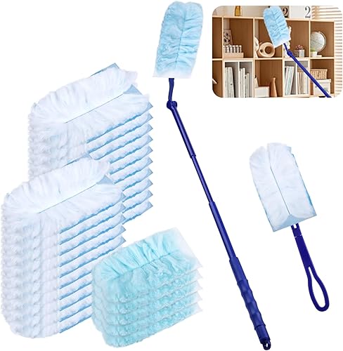 25 Pièces Plumeau Poussiere Recharge Kit pour Swiffer avec 1 Poignée et 1 Perche Télescopique, Recharges Plumeau Duster pour Nettoyer la Poussière la Saleté Les Poils Angles Morts Sanitaires
