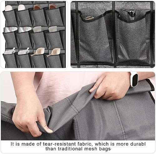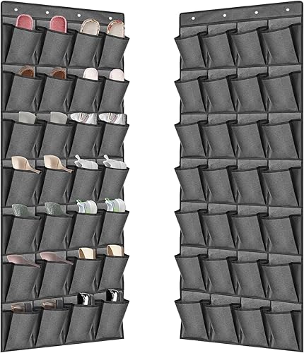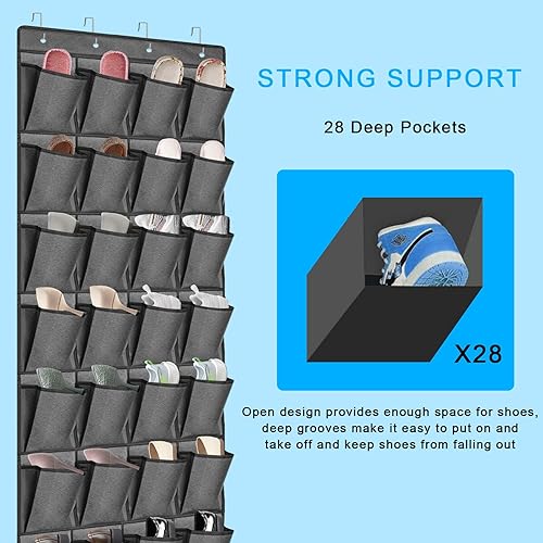 bssmmai Étagère à chaussures murale à suspendre avec 4 crochets, 28 grandes poches, organisateur de chaussures, convient pour 14 paires de chaussures pour dortoirs, appartements et camping-cars