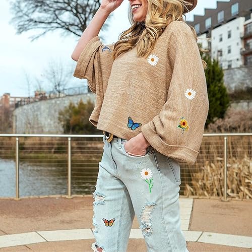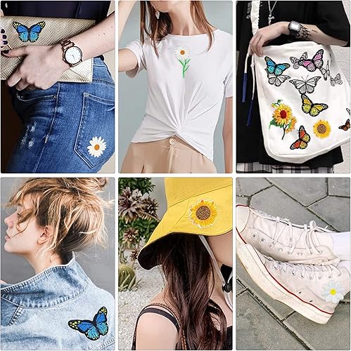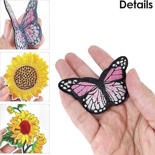 Showker 35pcs Patchs Thermocollants Décoratifs Broderie, DIy Patchs Papillon Ecusson Fleur Badge Brodé Ecusson à Coudre Appliqués à Coudre Thermocollant Pour Vêtements Jeans Veste Sac Dos