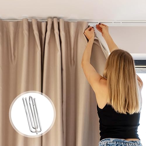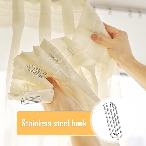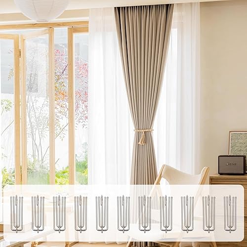 Lot de 60 crochets de rideaux en métal - En acier inoxydable - 4 dents - Pour rideaux et anneaux de rideau