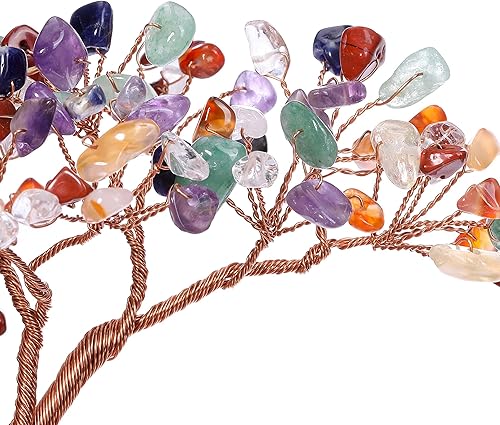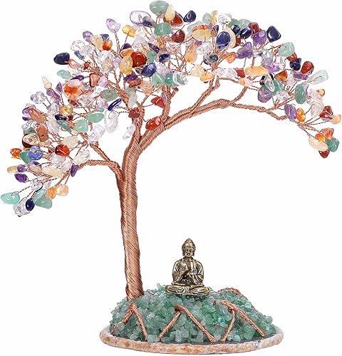 JSDDE Feng Shui Arbre de vie, d'argent, décoration, figurine Bouddha, avec base d'agate, pierre de guérison, de tambour, porte-bonheur, pour la maison, l’appartement, le bureau, la chambre, chakra