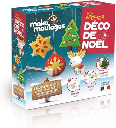 mako moulages - Mon Atelier Déco de Noël - Kit de Loisirs Créatifs en Famille - 4 Décorations de Noël en Plâtre à Peindre - Moule Réutilisable - Fête de Noël - Made In France - 39091