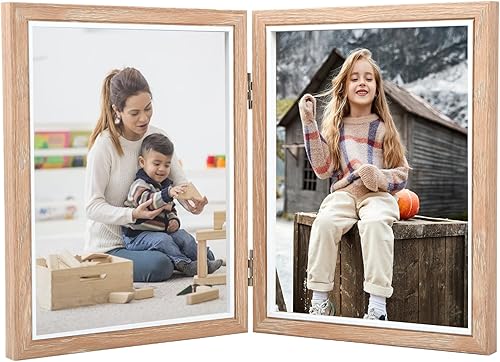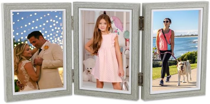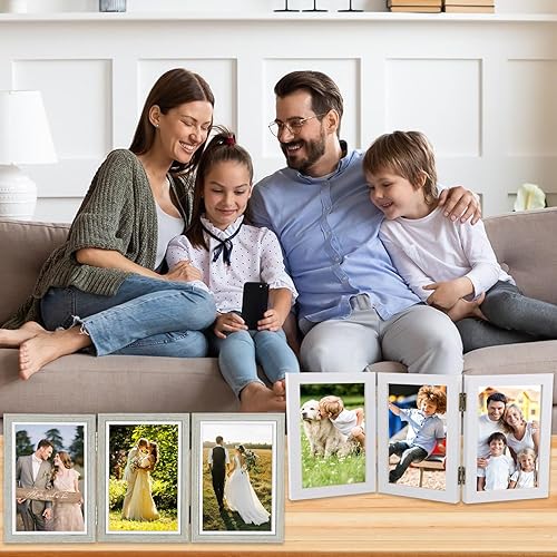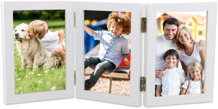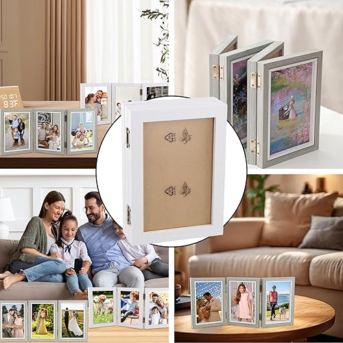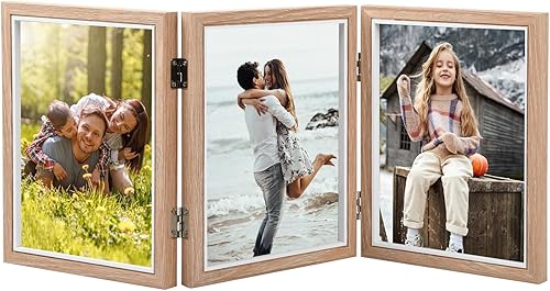 Ehuihuan Cadre 3 Photos, Cadre Photo Triple, Cadre Photo Double, Cadre Photo en Bois Pliable, Cadre Photo à Charnière Pour le Bureau ou la Famille (Triple de 6 pouces)