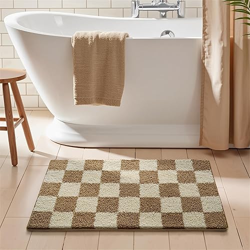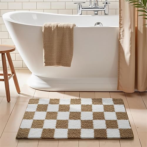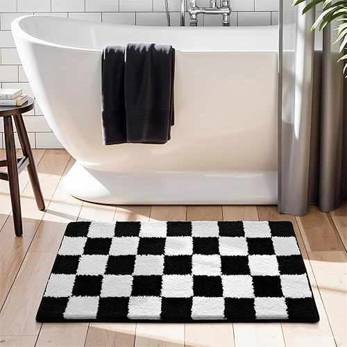 Surwin Tapis de Bain Antidérapant Microfibre, Motif Damier Tapis Salle de Bain Absorbant en Microfibre, Doux et Confortable Lavable pou Douche, Baignoire (Rose,40x72cm)