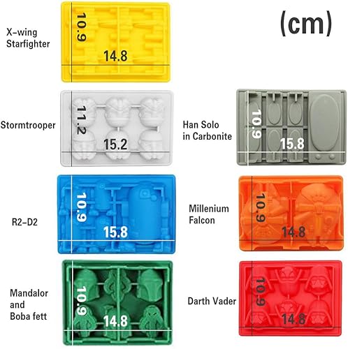 Moules à glaçons en silicone formes de personnages Star Wars, idéaux pour le chocolat, les bacs à glaçons, la gelée, les desserts, le savon à pâtisserie et la fabrication de bougies (lot de 7)