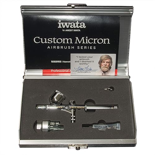 Iwata Custom Micron C Aérographe (ICM 4002) Version 2 avec gâchette de Forme carrée, Pont à Capuchon Couronne sur l'extrémité de la poignée, Aiguille et buse de 0,23 mm, Argent