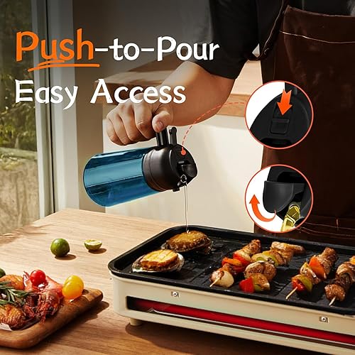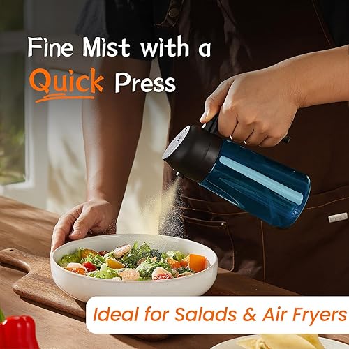TrendPlain Pulvérisateur d'huile d'olive en verre bleu de 470 ml pour la cuisine – Distributeur d'huile d'olive 2 en 1 pour gadgets de cuisine, friteuse à air, salade et barbecue – Noir