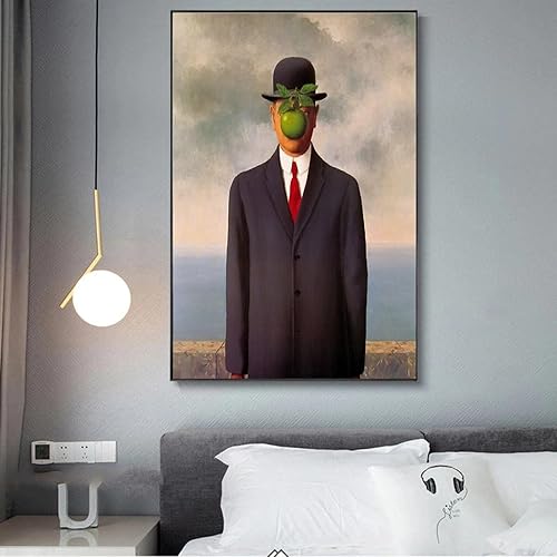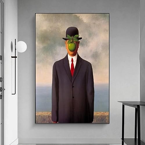 Dittelle Peinture sur toile Sons of A Man par Rene Magritte Retro Posters and Prints Famous Wall Art for Living Room Home Decor 80x110cm Frameless