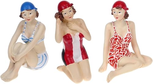 Quaytrader Glamorous Lot de 3 baignoires de bain pour femme Motif plage Rouge Blanc Bleu 10,5 cm